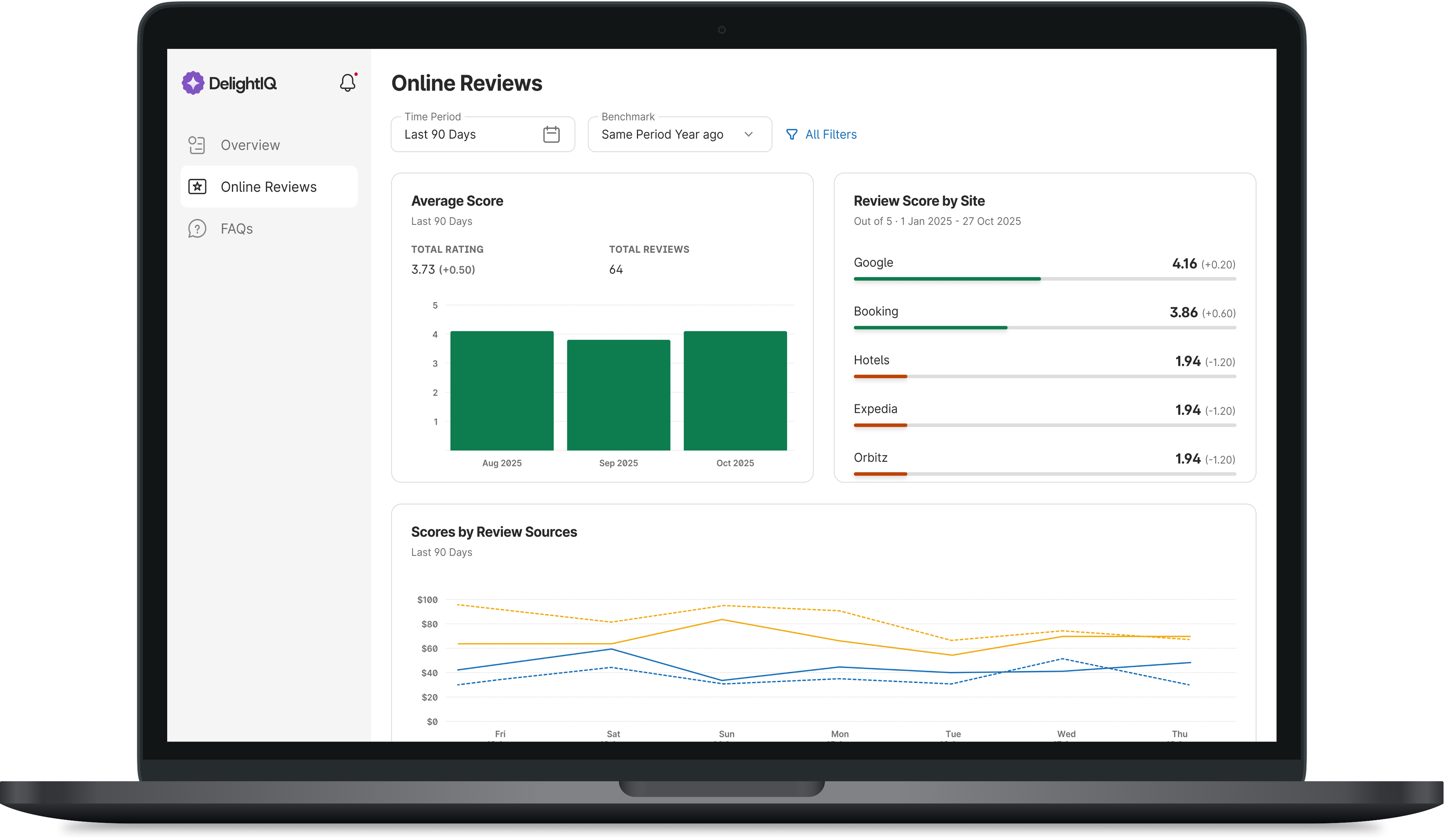 DelightIQ connects to all major OTAs and review platforms, giving you one unified, accurate view across channels.